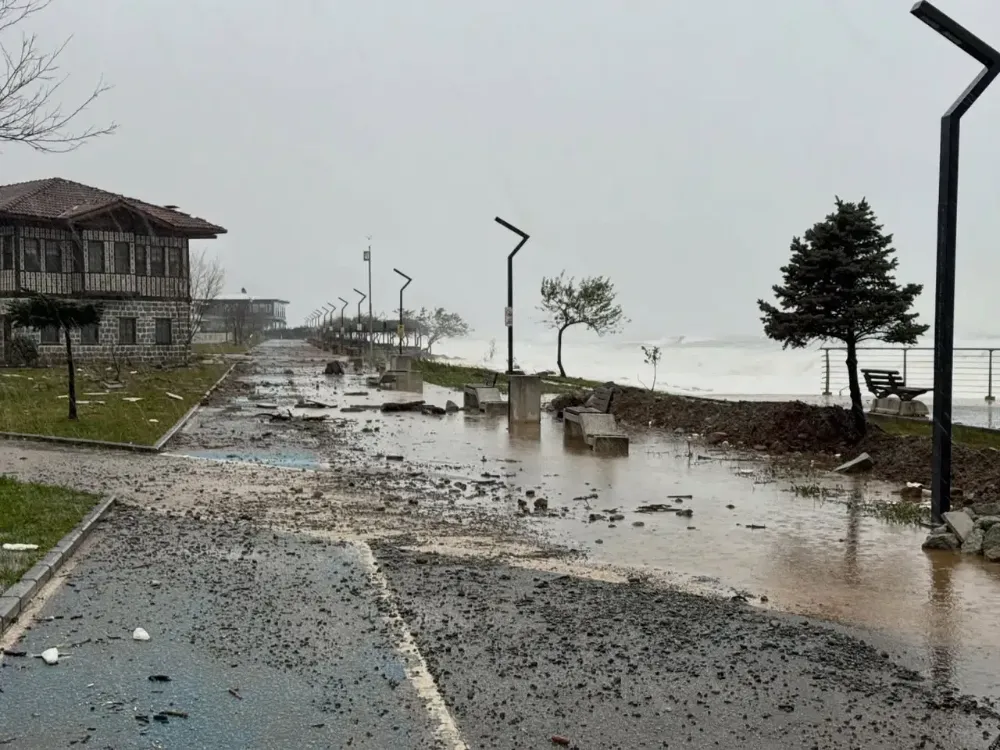 Şiddetli rüzgâr ve dalgaların etkisiyle park alanında hasar meydana gelirken, Fındıklı Belediyesi vatandaşları sahil şeridinden uzak durmaları konusunda uyardı.